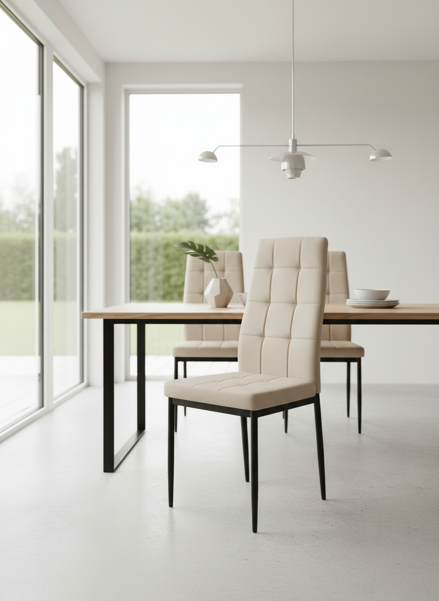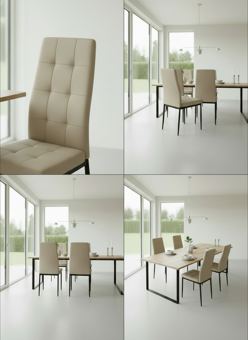 Structura robustă a scaunului este asigurată de cele patru picioare din metal negru, furnizând stabilitate și rezistență în timp. Adițional, protecțiile din plastic la baza picioarelor protejează pardoselile sensibile împotriva deteriorării. Asamblarea este simplă, datorită suruburilor și schiței de asamblare incluse în pachet. Acest scaun a fost supus testelor pentru a rezista la greutăți de până la 120 de kilograme, ceea ce îl recomandă pentru cei în căutarea unui scaun de înaltă calitate, care să ofere atât confort, cât și eleganță.
